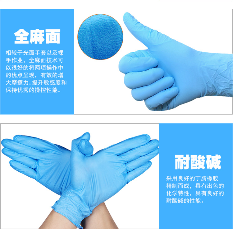 次性藍(lán)色手套橡膠乳膠防滑防水防油廚房實(shí)驗(yàn)室清潔丁腈手套